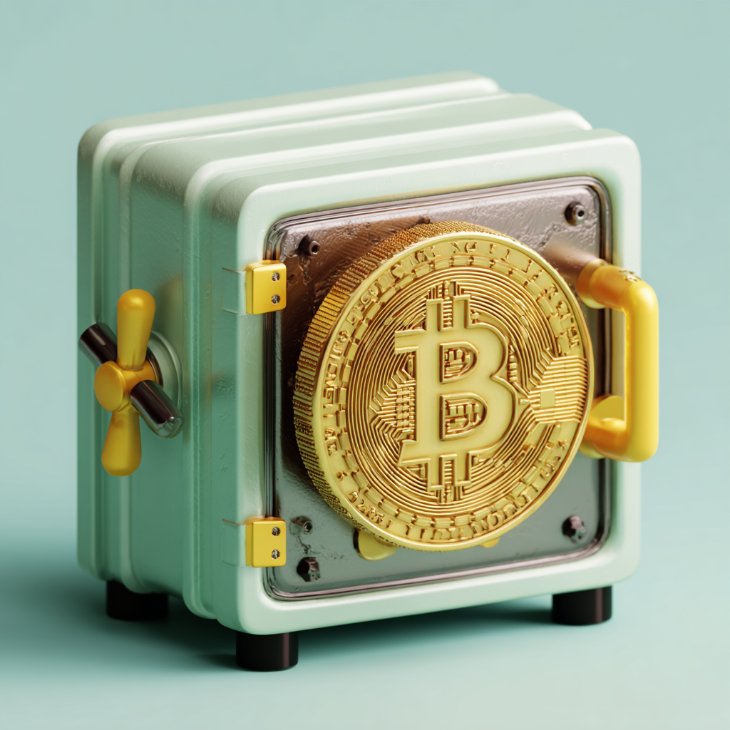 3d Rendering Of Safe Box Bitcoin Icon 2 PNG Icon — Crypto | itemic.design