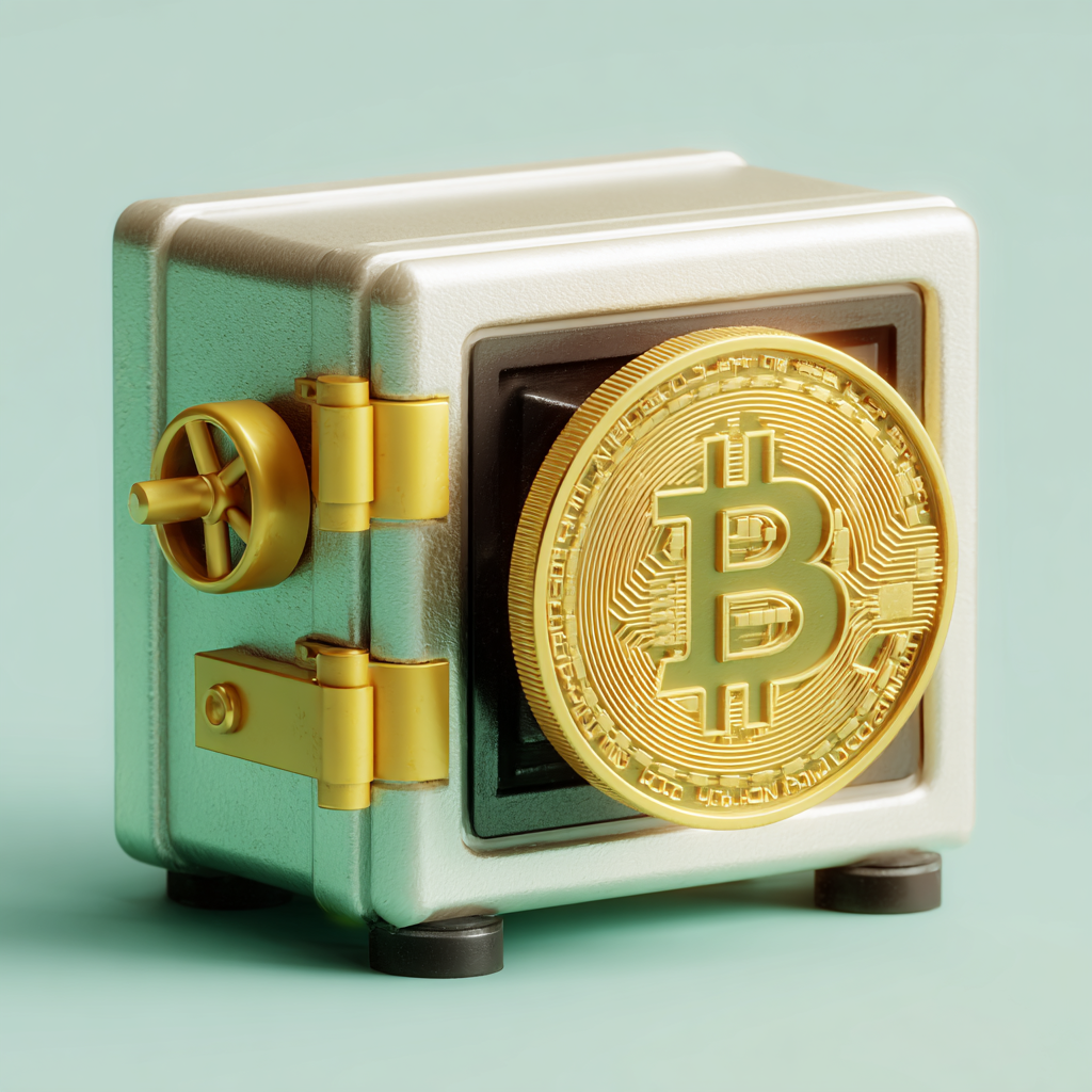 3d Rendering Of Safe Box Bitcoin Icon PNG Icon — Crypto | itemic.design